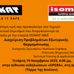 Αγαπητοί συνεργάτες, Με ιδιαίτερη τιμή σας προσκαλούμε στο Τεχνικό Εκπαιδευτικό Σεμινάριο που διοργανώνουμε σε συνεργασία με την εταιρία ISOMAT ΑΒΕΕ την Τετάρτη 19 Νοεμβρίου 2025, 6:00 μμ, στην αίθουσα εκδηλώσεων «OPERA», στη Δράμα (Τέρμα 1ης Ιουλίου). Κατά τη διάρκεια του σεμιναρίου θα γίνει παρουσίαση στη Διαχείριση Προβλημάτων Εξωτερικής Θερμομόνωσης καθώς και αναλυτική ενημέρωση για τον τρόπο και τα